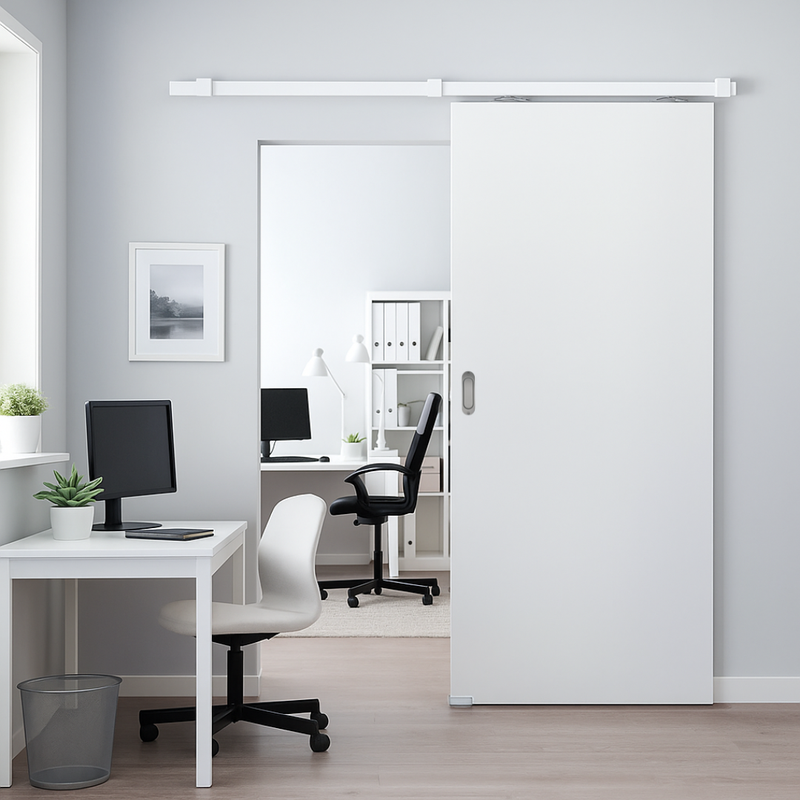 Kit porta madeira com trilho de alumínio, é perfeito para você que deseja instalar uma porta de correr com falicidade e qualidade, seja na sua sala, cozinha, banheiro ou outro ambiente interno que necessite a colocação de uma porta.