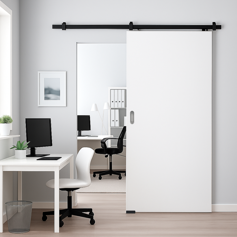 Kit porta madeira com trilho de alumínio, é perfeito para você que deseja instalar uma porta de correr com falicidade e qualidade, seja na sua sala, cozinha, banheiro ou outro ambiente interno que necessite a colocação de uma porta.