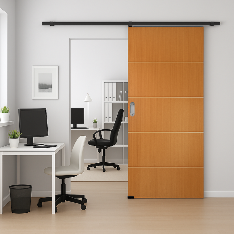 Kit porta madeira com trilho de alumínio, é perfeito para você que deseja instalar uma porta de correr com falicidade e qualidade, seja na sua sala, cozinha, banheiro ou outro ambiente interno que necessite a colocação de uma porta.