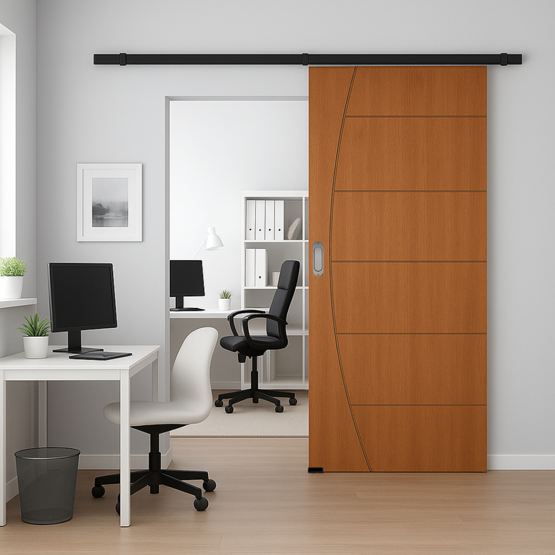 Kit porta madeira com trilho de alumínio, é perfeito para você que deseja instalar uma porta de correr com falicidade e qualidade, seja na sua sala, cozinha, banheiro ou outro ambiente interno que necessite a colocação de uma porta.